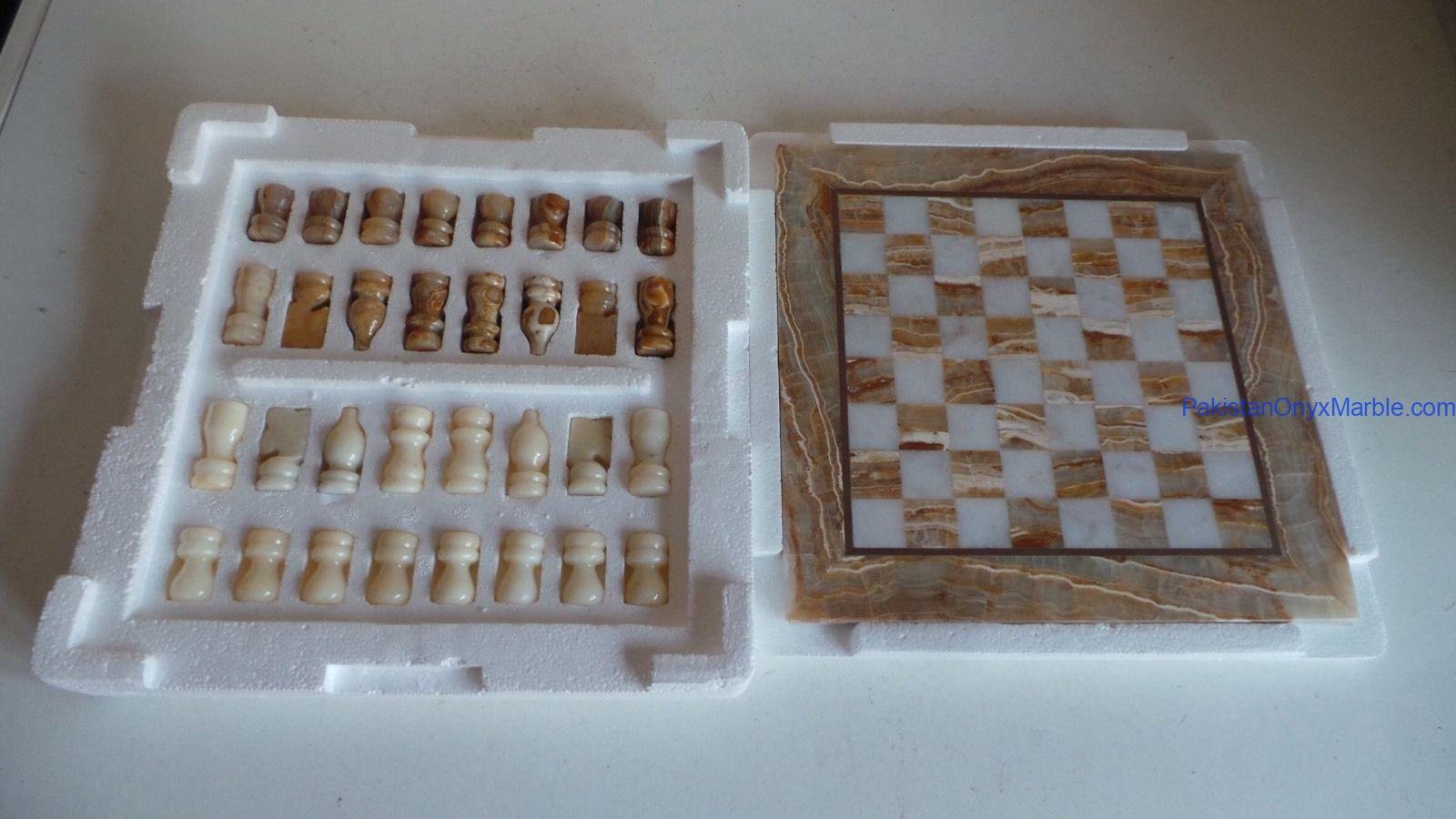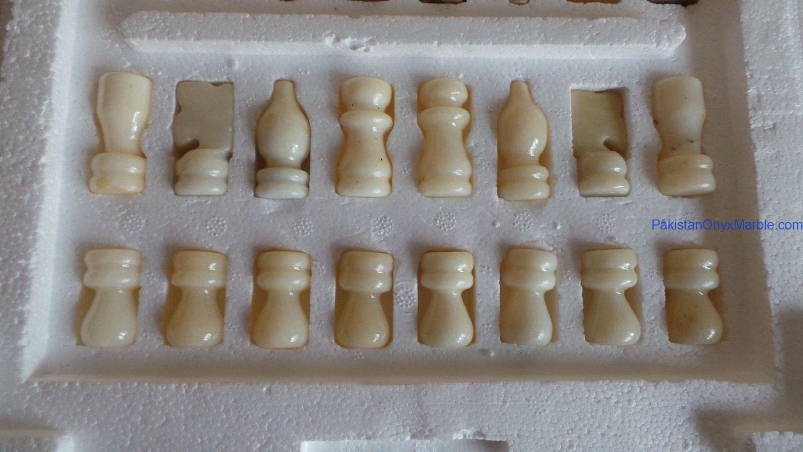 All chess boards and pieces are produced using carefully selected natural onyx: