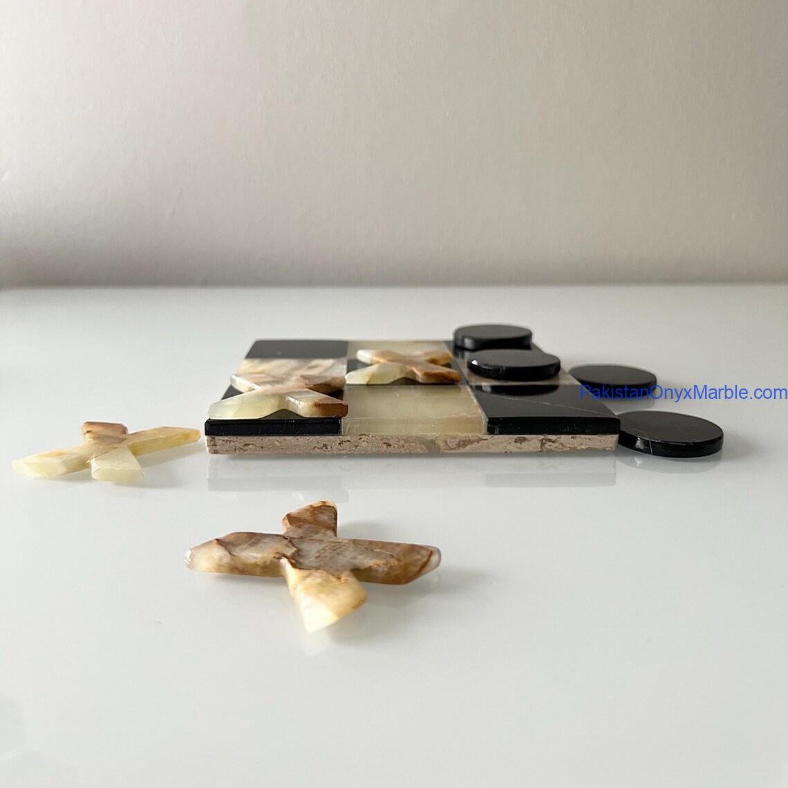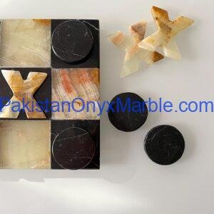 All Onyx Marble Premium Quality Tic Tac Toe Set Pieces and Boards