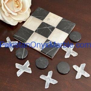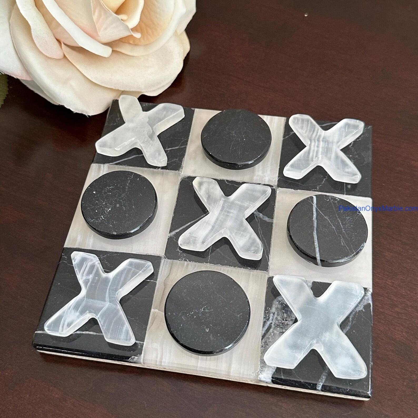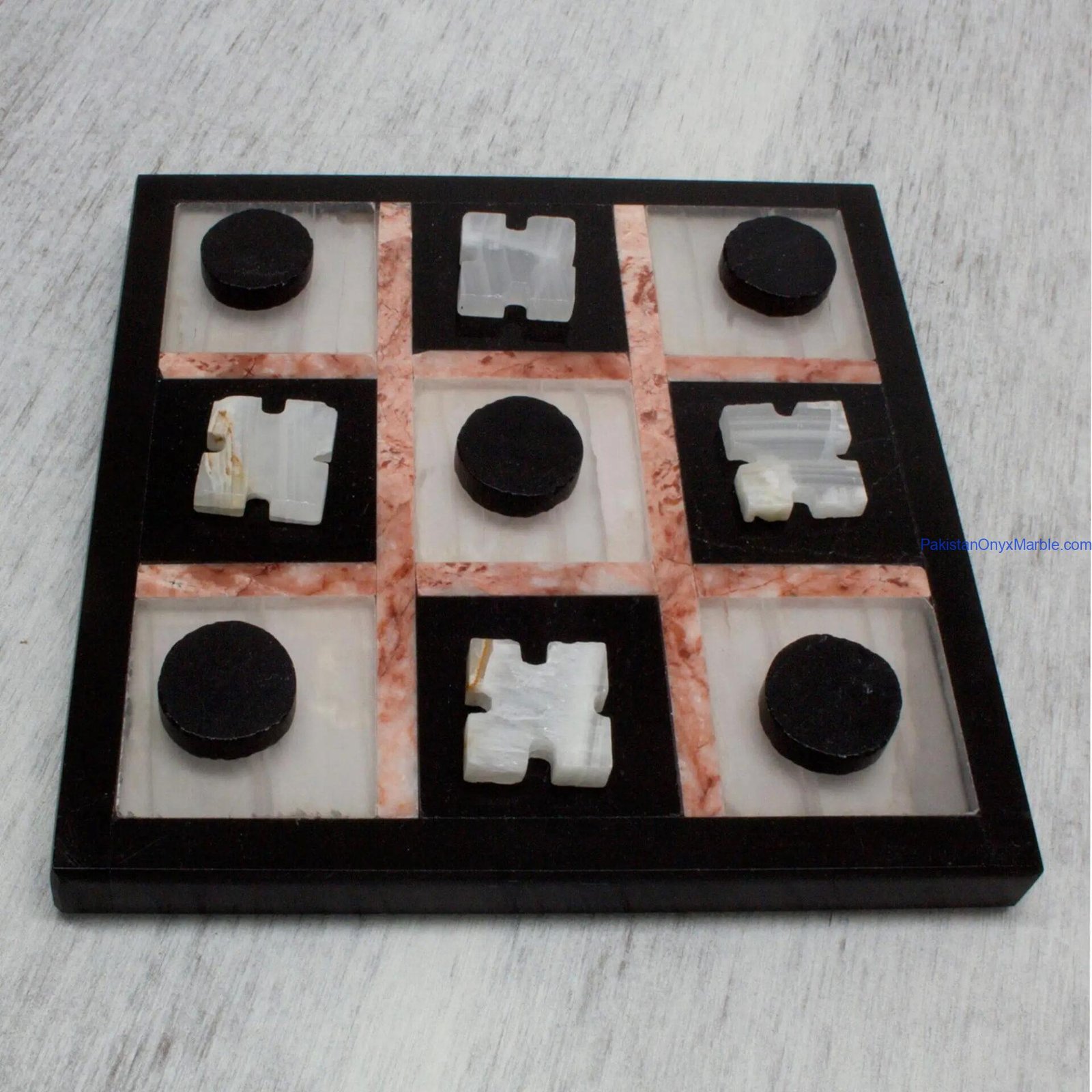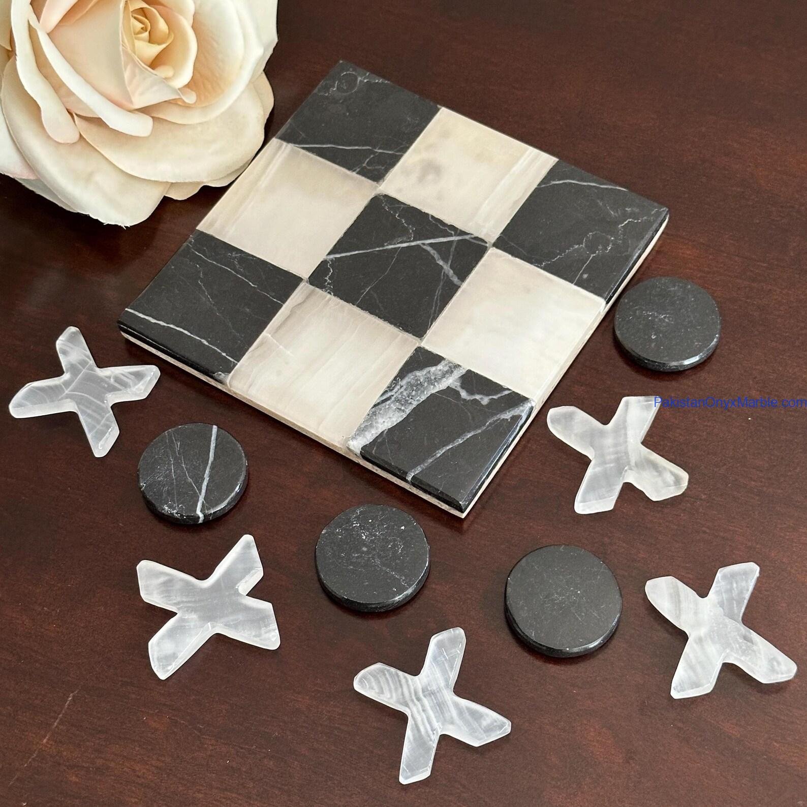 All Onyx Marble Premium Quality Tic Tac Toe Set Pieces and Boards