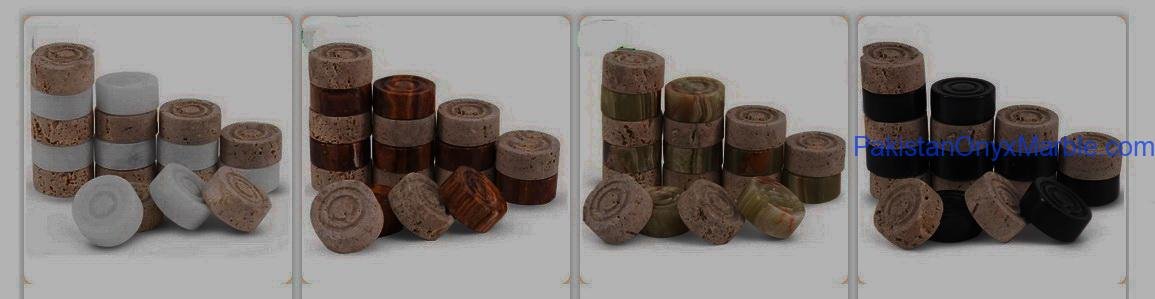 These checker pieces are produced by Pakistan Onyx Marble, using natural stone sourced from Pakistan. The manufacturing process includes stone block selection, cutting into discs, edge finishing, polishing, quality inspection, and packaging for export.