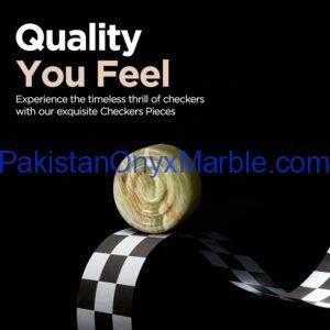 Checker sets are manufactured using natural marble, onyx, and travertine stone sourced from Pakistan’s stone quarries. These materials are widely valued for their durability, natural patterns, and premium aesthetic.