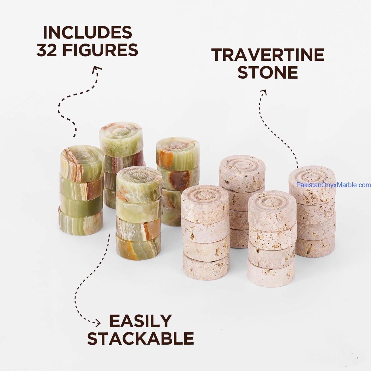 Travertine Marble Checker Pieces Figures Premium Quality: Travertine Stone & Green Onyx Handmade Luxury Pieces Photo Gallery