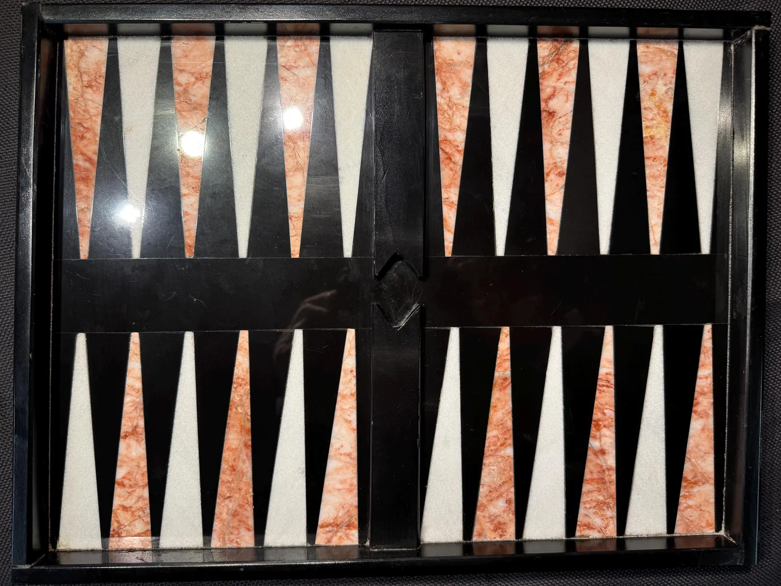 Marble Premium Quality Backgammon Set Black White and Pink Marble Handmade Luxury Pieces & Board Photo Gallery