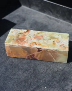 Onyx stone is known for its natural translucency, layered patterns, and rich color tones, which make every domino tile unique. These sets are widely used as premium board games, decorative objects, and luxury gift items.