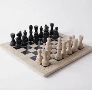 All Travertine, Marble, and Onyx Chess Set Game Boards are handcrafted luxury stone chess products made from natural travertine, marble, and onyx stone. These premium chess sets combine traditional stone craftsmanship with modern decorative design, making them suitable for both gameplay and luxury interior décor.