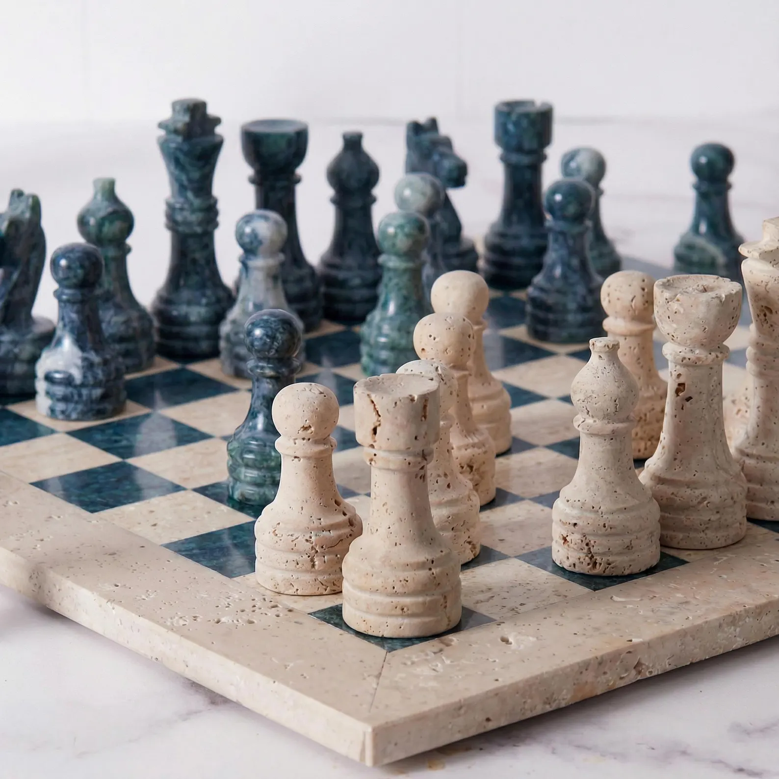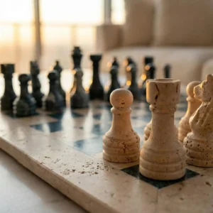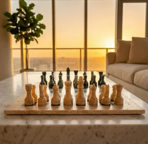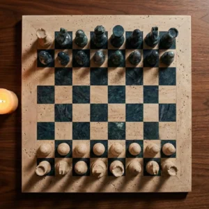 All Travertine, Marble, and Onyx Chess Set Game Boards are handcrafted luxury stone chess products made from natural travertine, marble, and onyx stone. These premium chess sets combine traditional stone craftsmanship with modern decorative design, making them suitable for both gameplay and luxury interior décor.