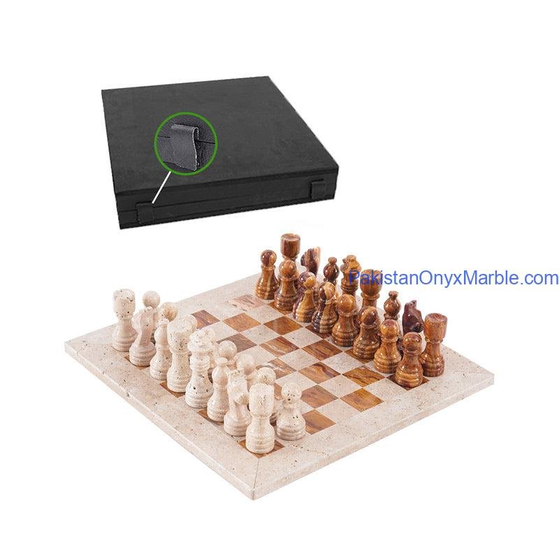 Travertine Onyx Chess Set: Travertine Stone & Brown Onyx Handmade Luxury Board & Pieces Photo Gallery