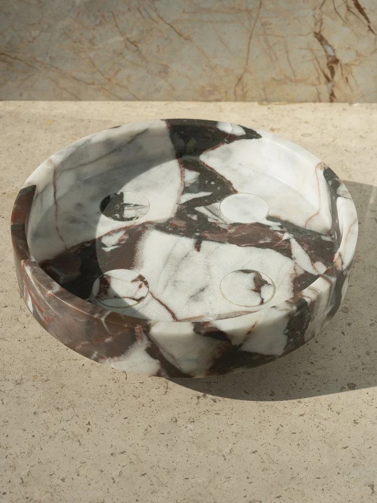 Calacatta Viola marble bowls are premium handcrafted stone bowls made from carefully selected natural Calacatta Viola marble, known for its striking violet and burgundy veining on a creamy white base. These bowls are designed for luxury serving, decorative use, hospitality, and high-end interior styling.