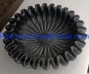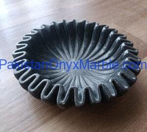 Jet Black Marble Bowls Round Scalloped Designs