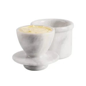 Marble butter keepers with lid are premium kitchen storage accessories carved from solid natural stone. Marble’s natural cooling and insulating properties help maintain butter freshness at room temperature, while the fitted lid protects against air, dust, and odors. Suitable for home kitchens, hotels, restaurants, and luxury gifting.