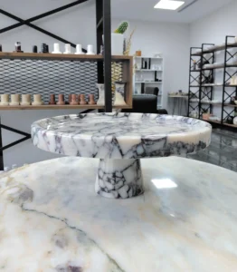 Marble cake stands are premium tabletop display pieces carved from solid natural stone. They combine strength, weight, and elegance, making them ideal for presenting cakes, desserts, pastries, and décor items in homes, bakeries, cafés, hotels, and event styling.