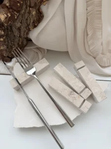 Marble cutlery rest sets are premium dining accessories crafted from solid natural stone. They are designed to keep cutlery elevated off the table, maintaining hygiene while adding a luxury, refined look to dining setups in homes, restaurants, hotels, and events.