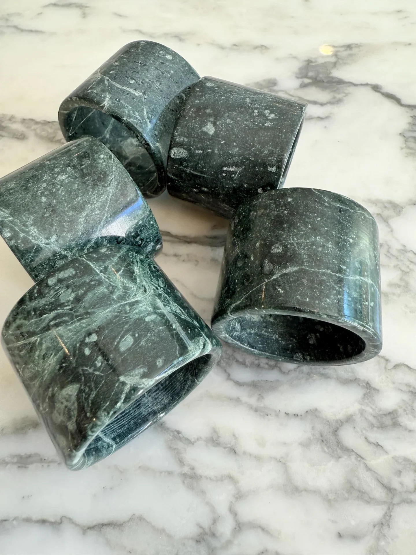 All napkin rings are carved from solid natural stone (no resin, no bonding).