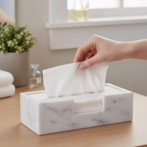 Marble napkin holder trays are premium tabletop accessories that combine a flat tray base with a napkin-holding area. Made from solid natural stone, they offer weight, stability, and a refined look, ideal for dining tables, kitchen counters, cafés, hotels, and event setups.