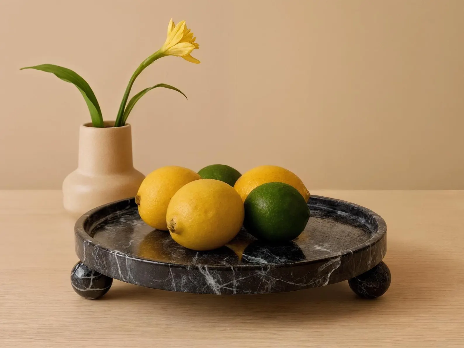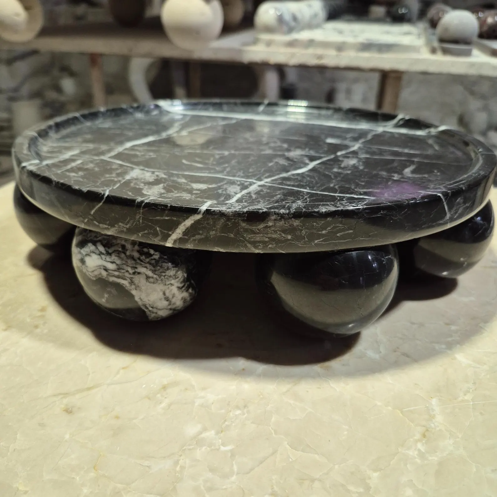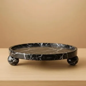 [ Black Zebra Marble Trays Round With Sphere Base Designs ]
