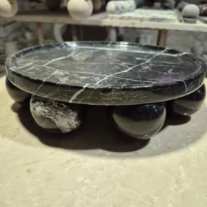 Black Zebra Marble Trays Round With Sphere Base Designs