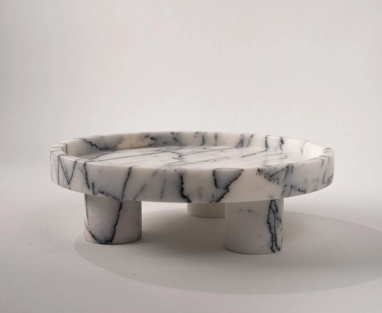 Tray sits elevated on marble or metal feet
