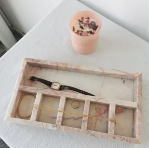 • Marble trays made from Pakistan Onyx Marble can be used for various purposes, such as serving food, organizing jewelry, displaying decor, or holding toiletries.
