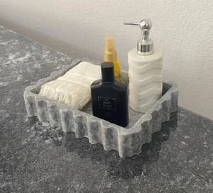 Gray marble trays add a clean, modern, and sophisticated stone accent to any space.