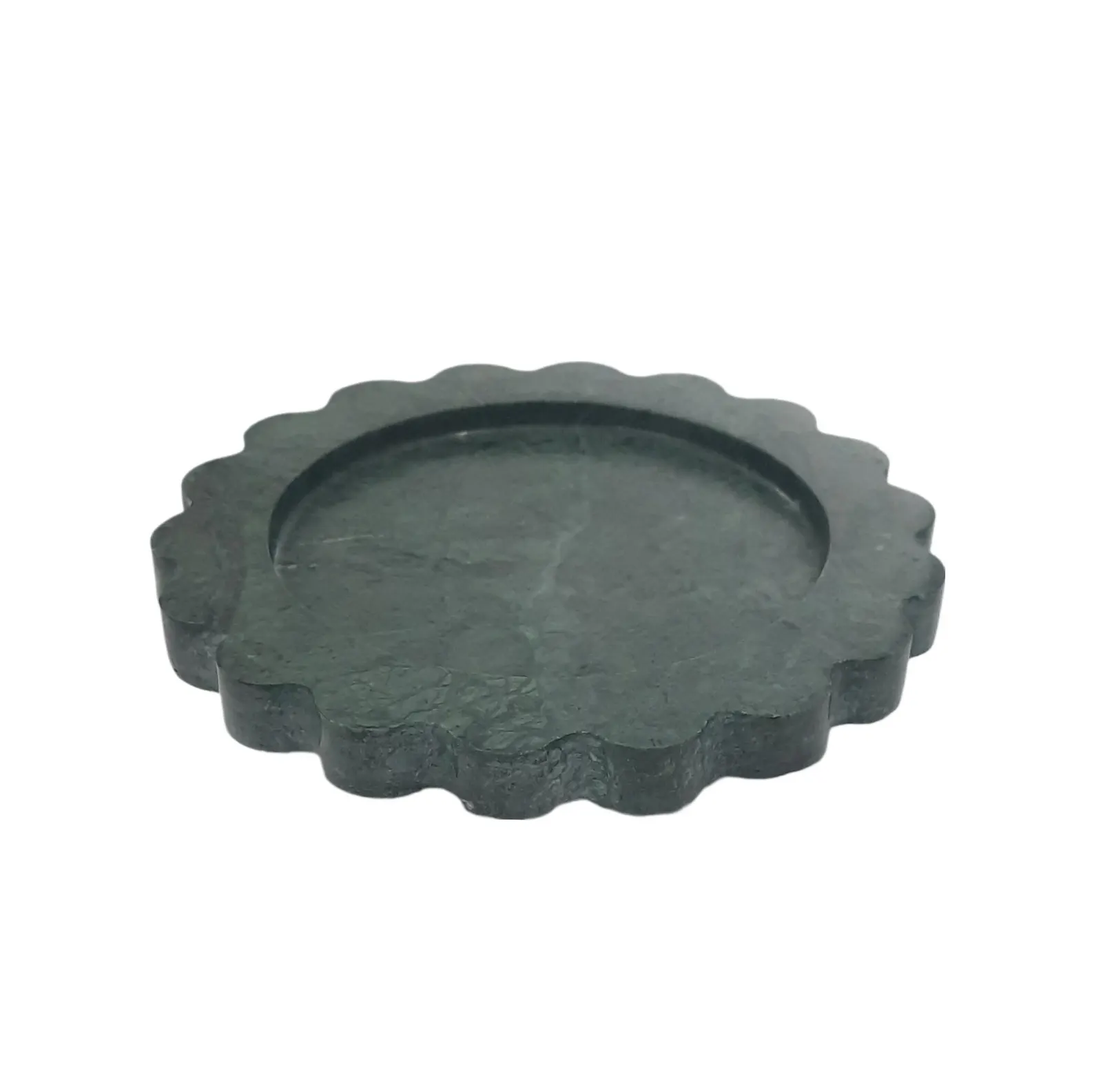 Green marble trays round scalloped designs, round scalloped green marble tray, green marble scalloped round serving tray, luxury green marble tray scalloped edge, natural green marble round scalloped tray decor, marble tray scalloped design green marble, decorative green marble tray, coffee table green marble scalloped round tray, bathroom vanity green marble tray scalloped, hotel spa green marble serving tray, wholesale green marble trays, green marble tray manufacturer Pakistan, marble tray exporter Pakistan