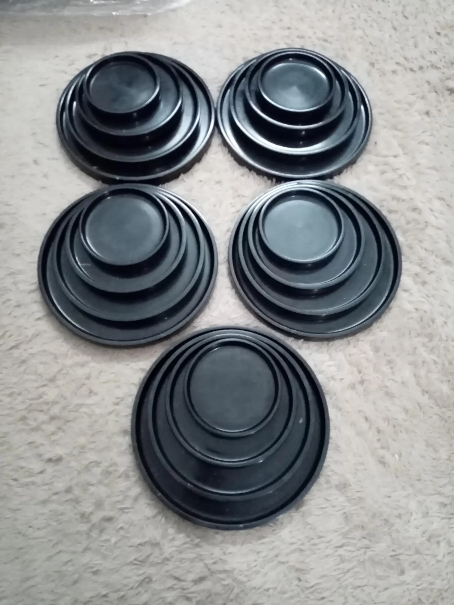 [ Jet Black Marble Trays Round Designs ]