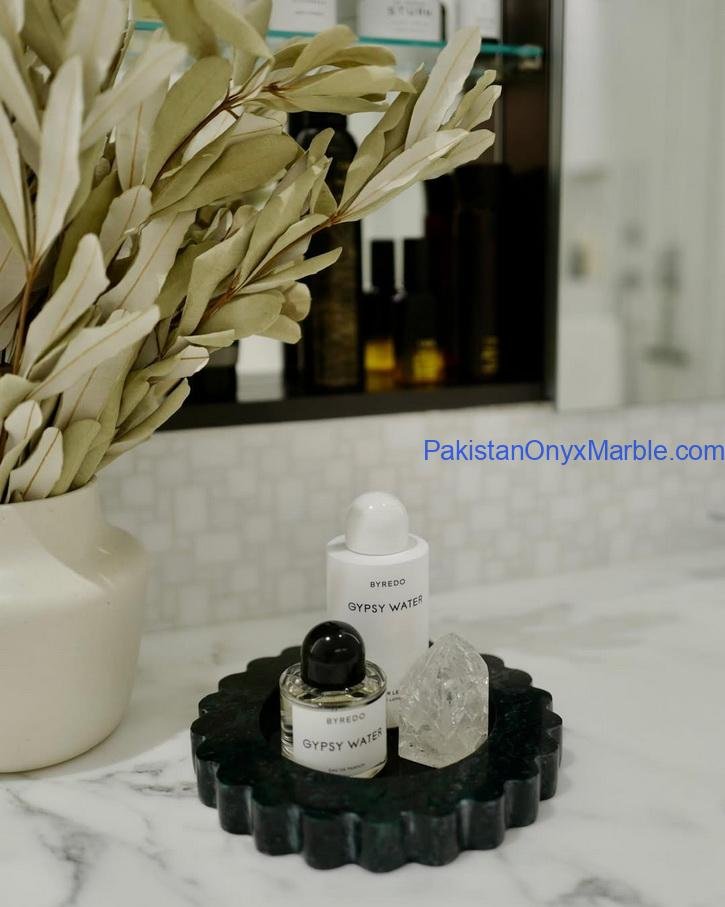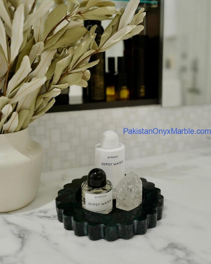 Marble trays made from Pakistan Onyx Marble can be used for various purposes, such as serving food, organizing jewelry, displaying decor, or holding toiletries.