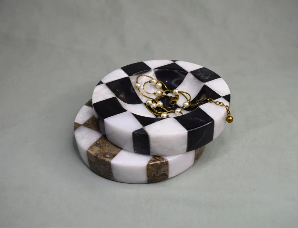 Multi-Stone Marble Trays with Checker Strips: Designs, Shapes, Sizes, and Uses