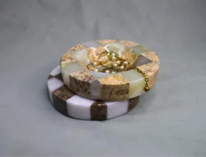Multi-stone marble trays with checker strips are a stylish and artistic blend of different types of natural stone. These trays typically feature a checkerboard pattern made from various marbles such as Black, White, Beige, Green, Onyx, and Fossil Marble. The contrast between the different stones creates a unique, luxurious, and eye-catching design. These trays are widely used for home décor, serving, and organization, bringing a modern yet timeless elegance to any space.