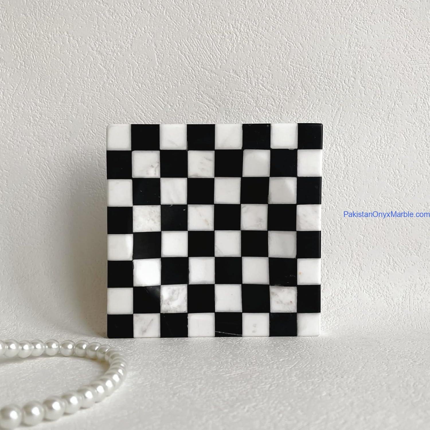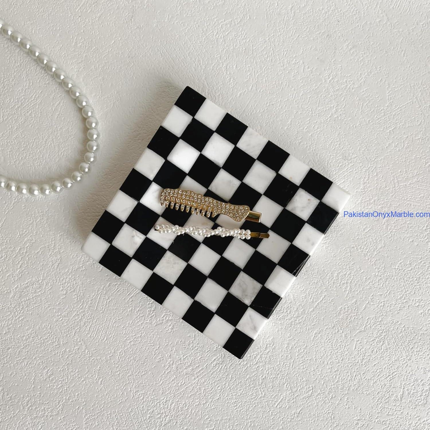 [ Multi Stone Marble Trays Square Checker Designs ]