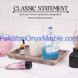 • Marble trays made from Pakistan Onyx Marble can be used for various purposes, such as serving food, organizing jewelry, displaying decor, or holding toiletries.