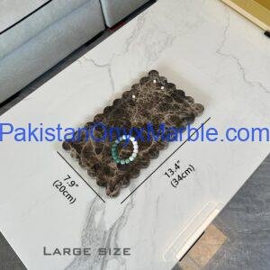 • Marble trays made from Pakistan Onyx Marble can be used for various purposes, such as serving food, organizing jewelry, displaying decor, or holding toiletries.