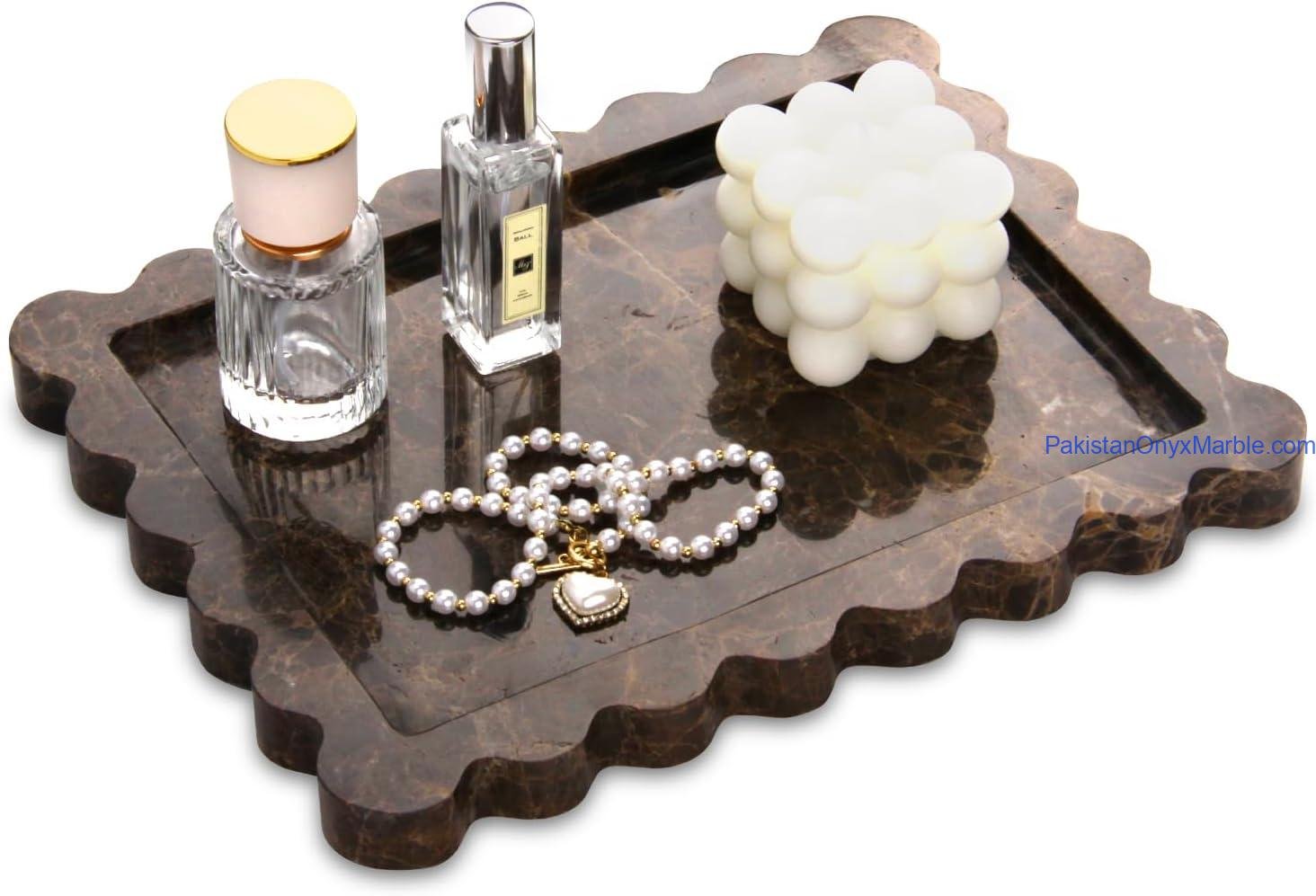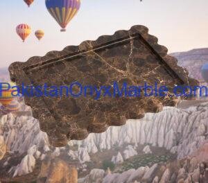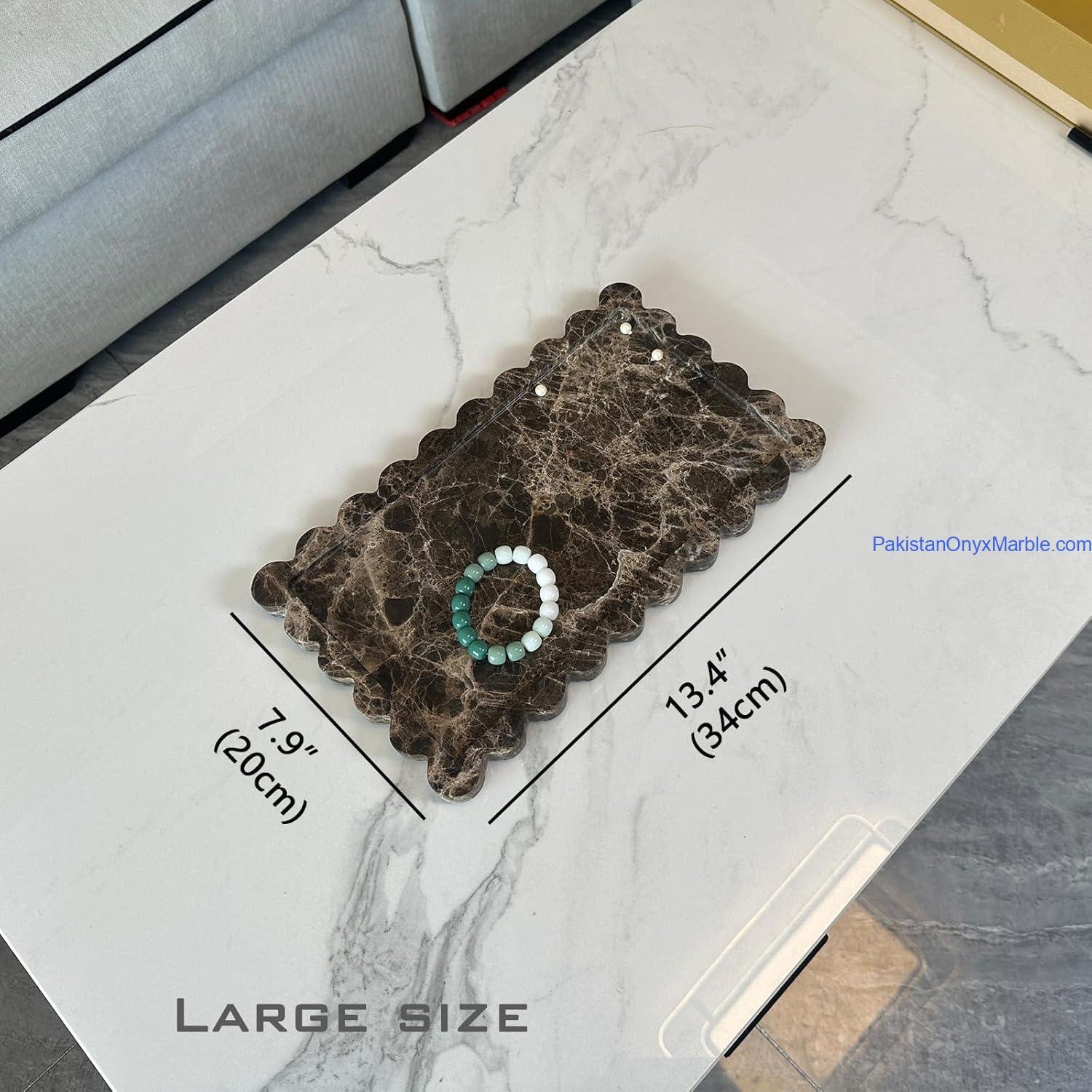 Pietra Brown Marble Trays Rectangle Scalloped Designs