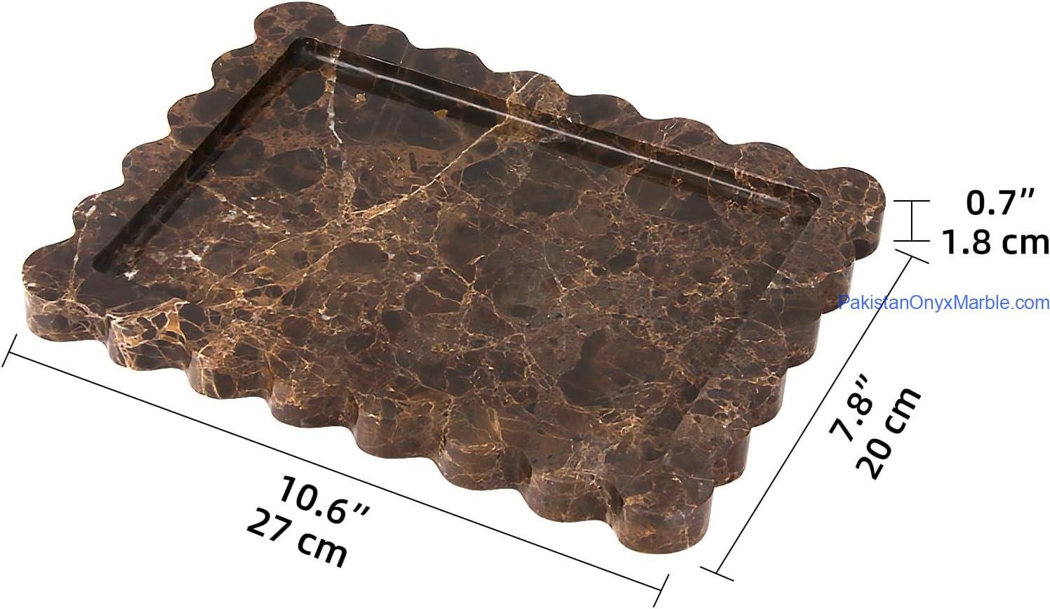 Pietra Brown Marble Trays Rectangle Scalloped Designs Photo Gallery