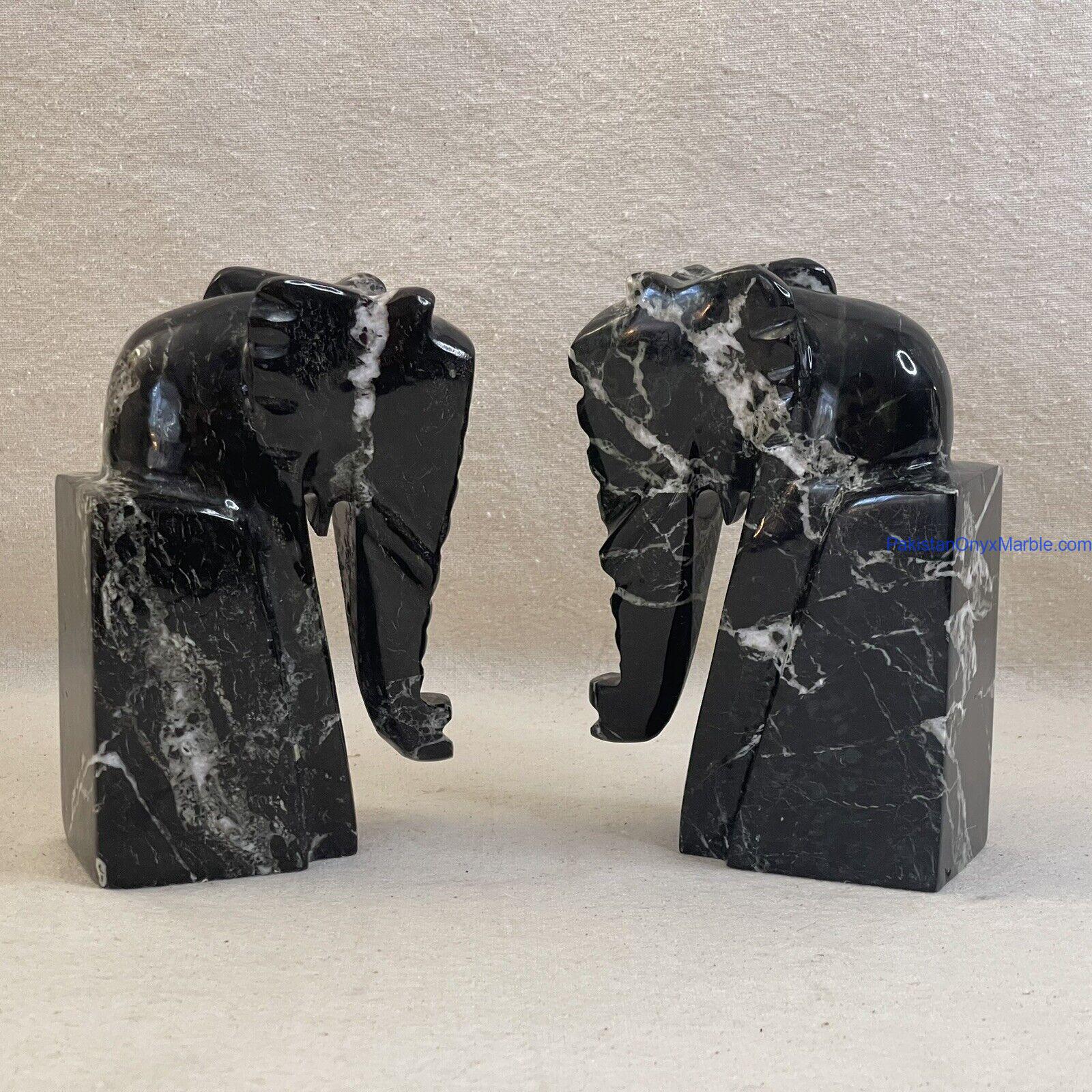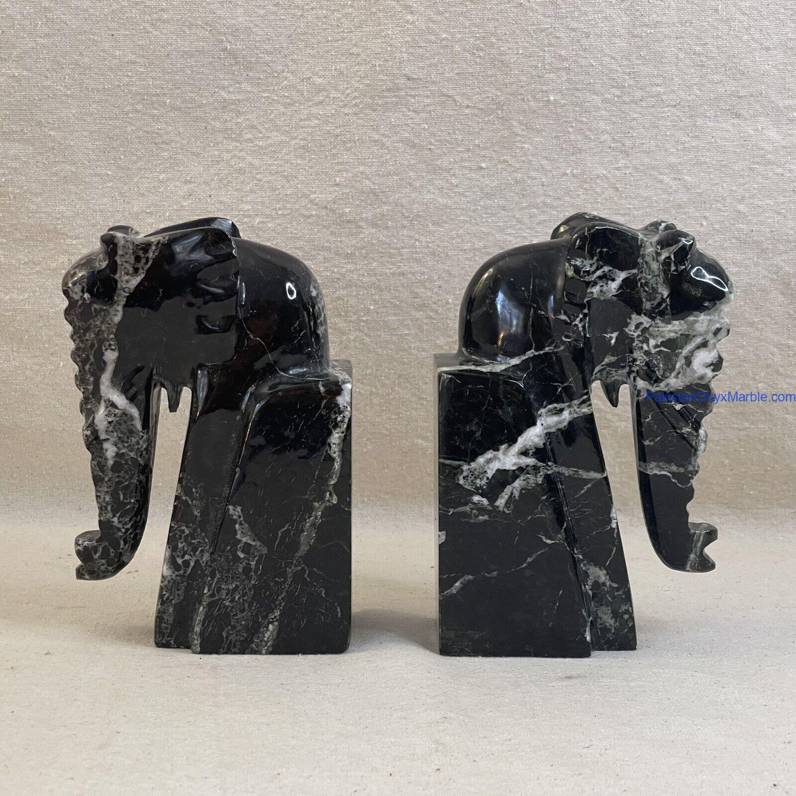 Black Zebra Marble Bookends Elephant Sculptures Designs