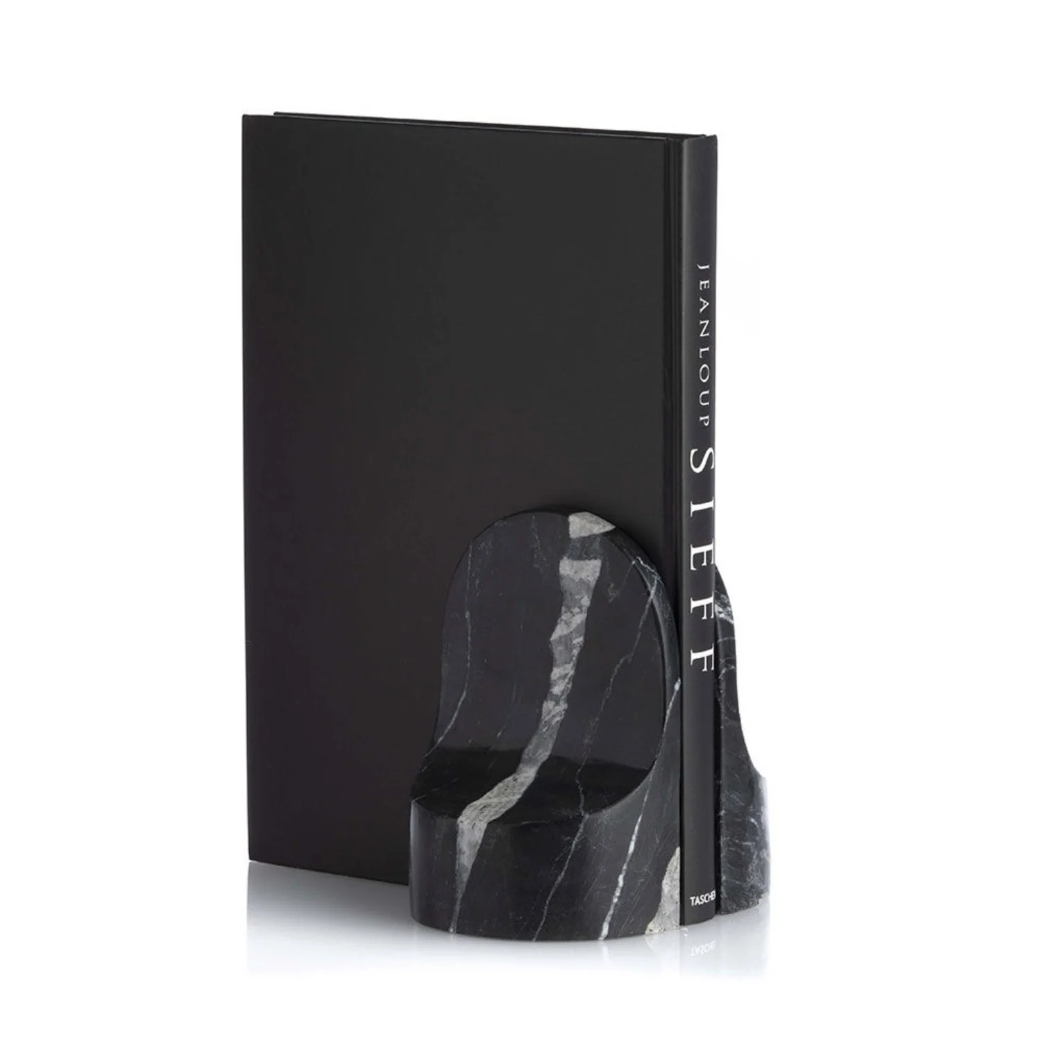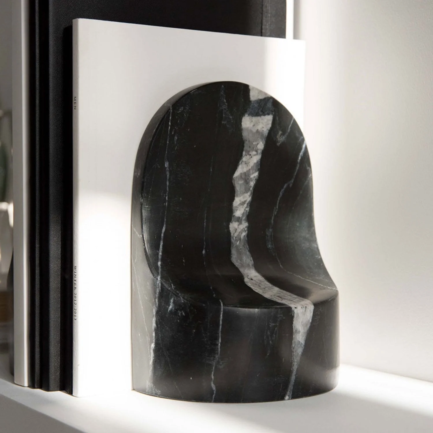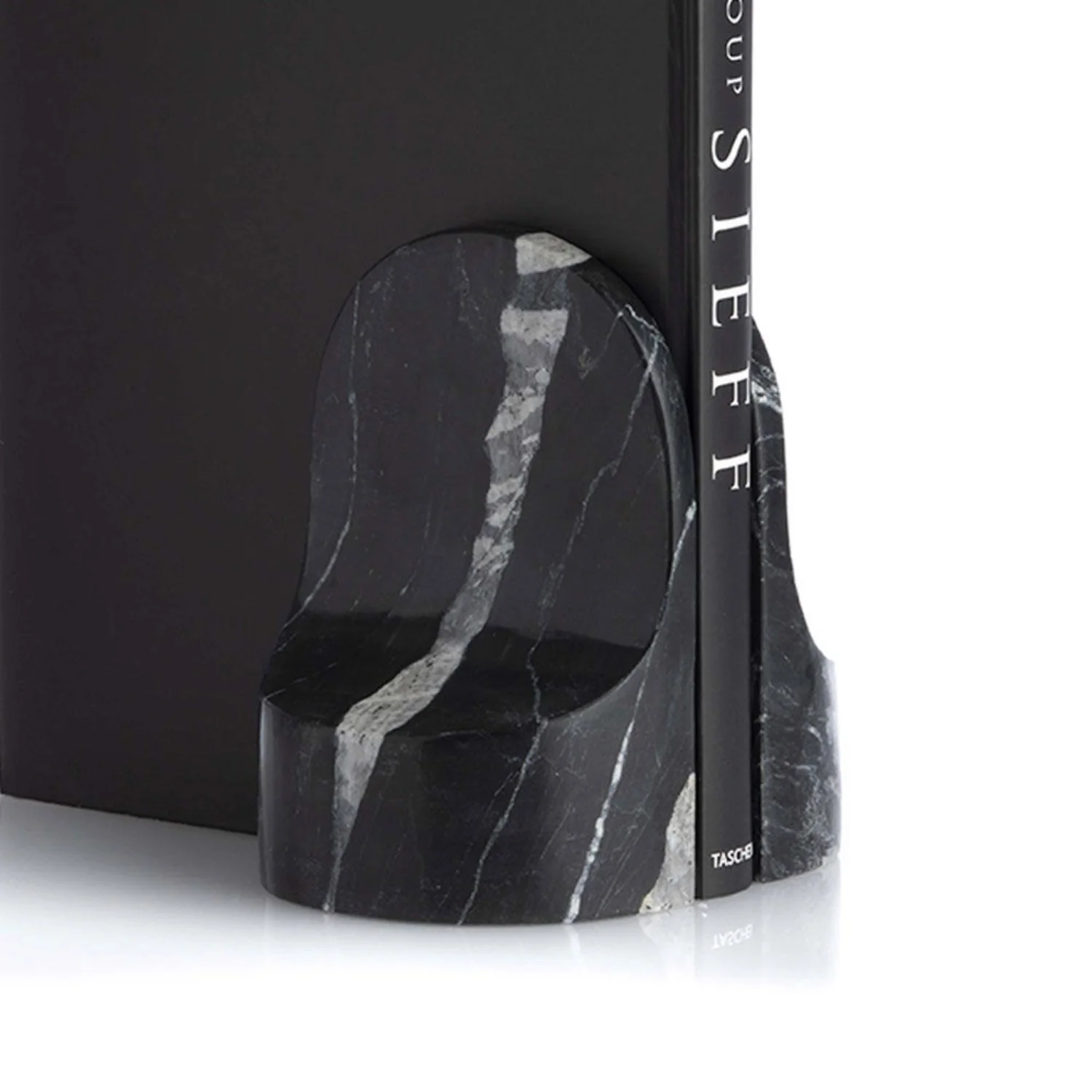 • Creative Emoji-themed bookends carved from natural Black Zebra Marble.