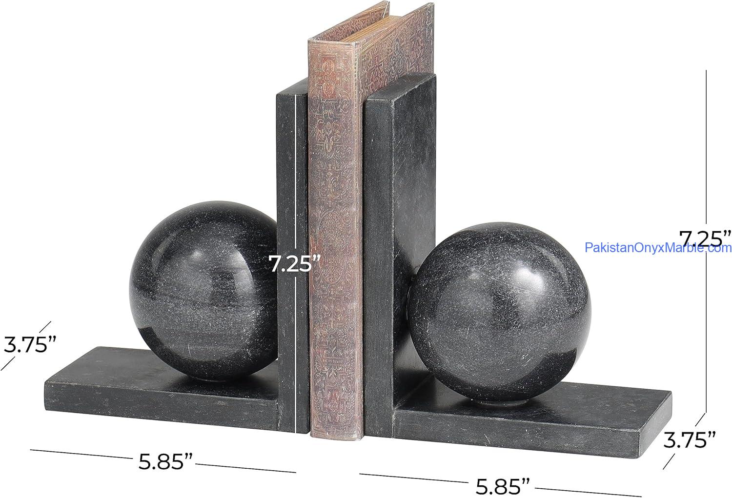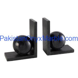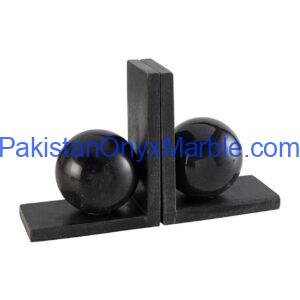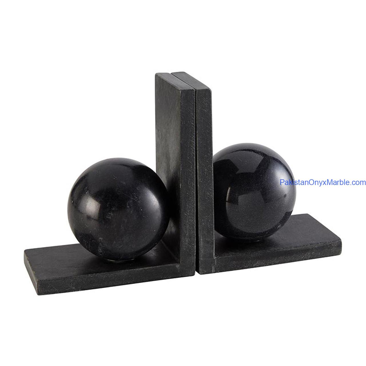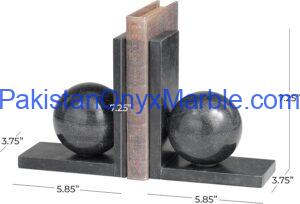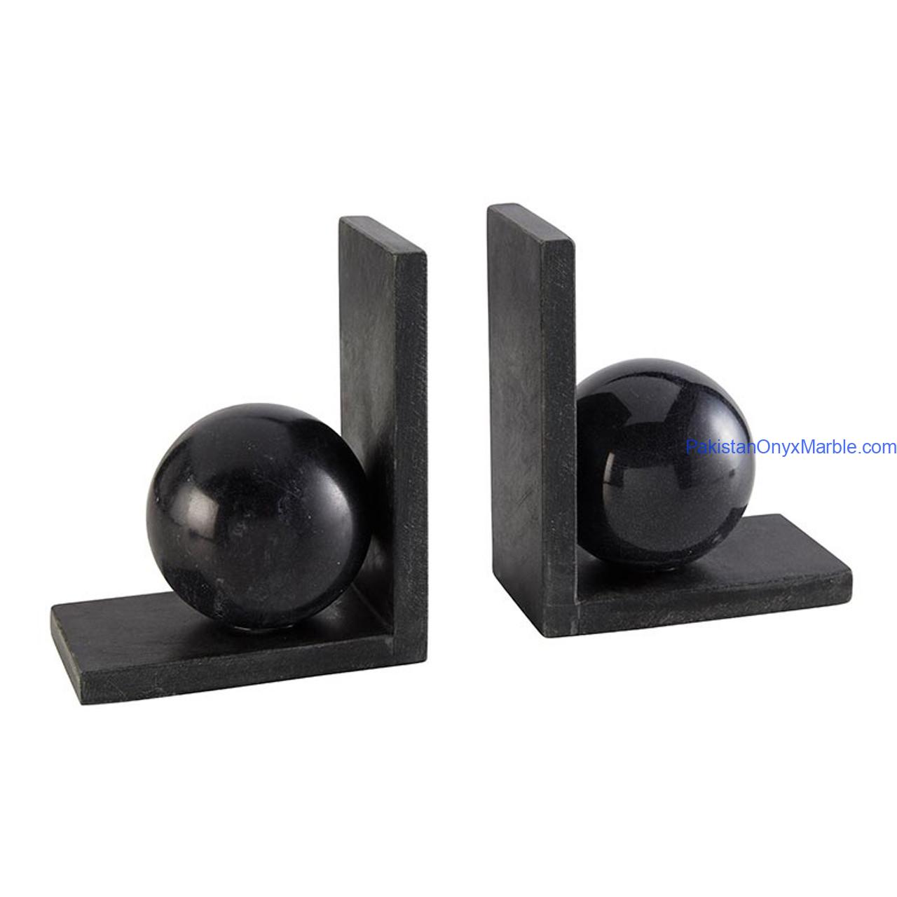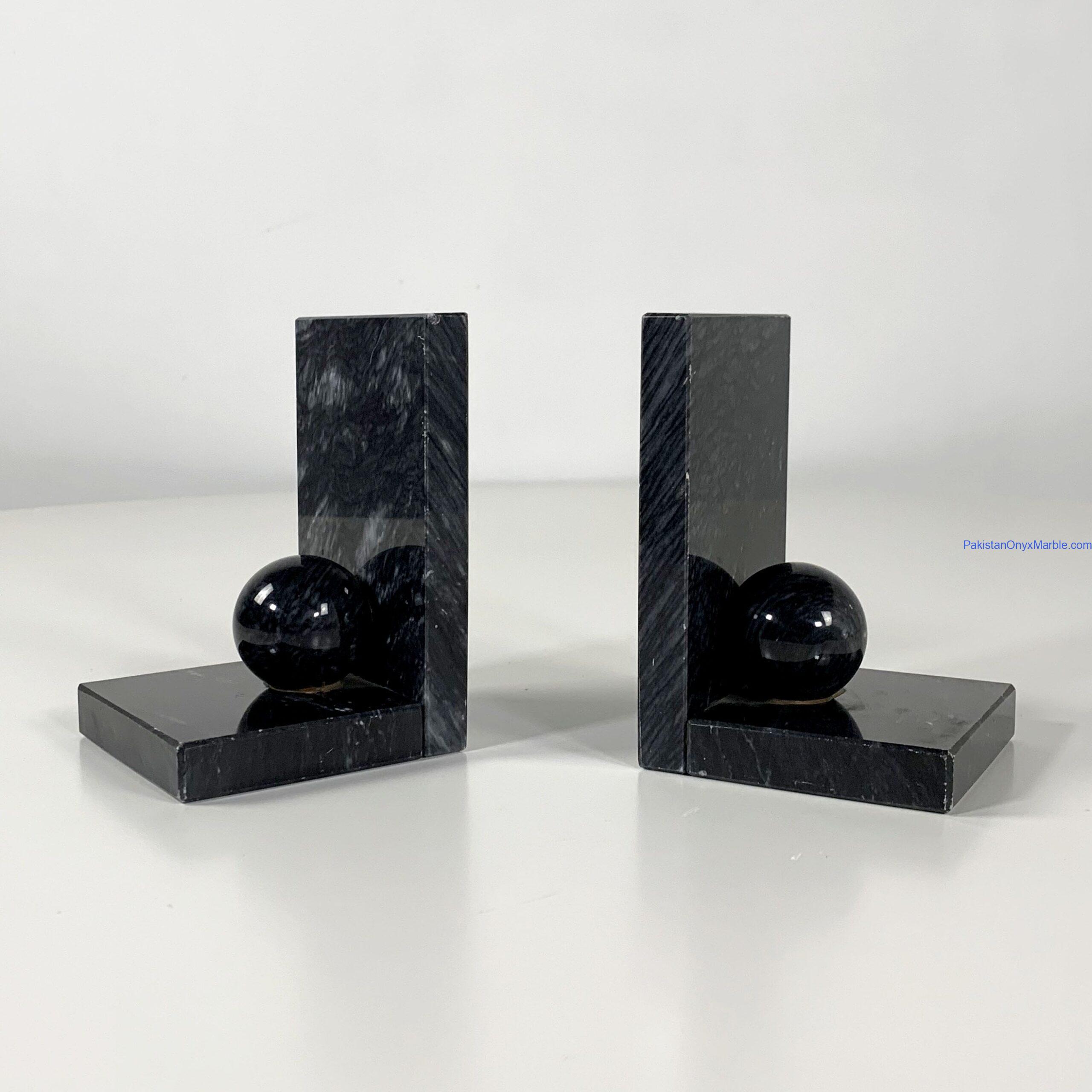 Jet Black Marble Bookends L Shape With Sphere Designs