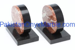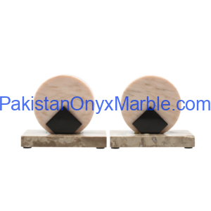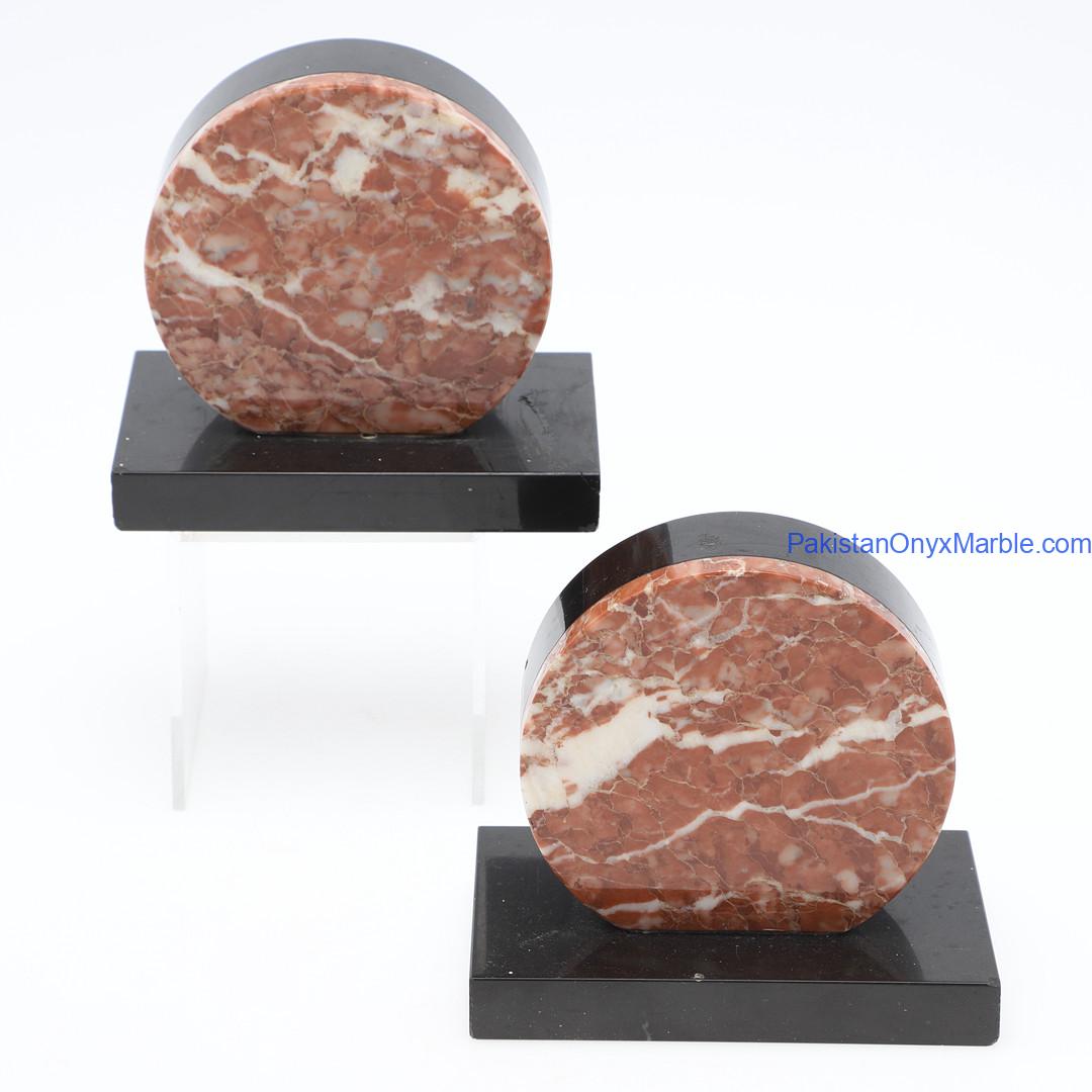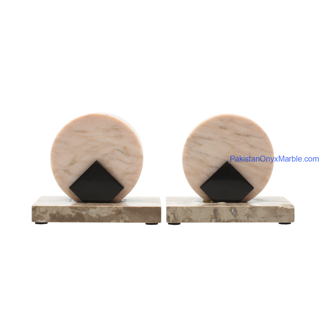 Marble Bookends Art Deco Bi Tri Marble Round Design