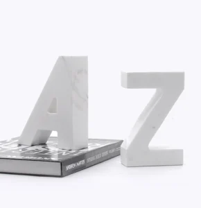 At Pakistan Onyx Marble, Alphabetical Bookends are hand-carved by expert artisans using premium quality natural white marble. Each piece undergoes precise cutting, shaping, and polishing to achieve a refined finish. The company offers: