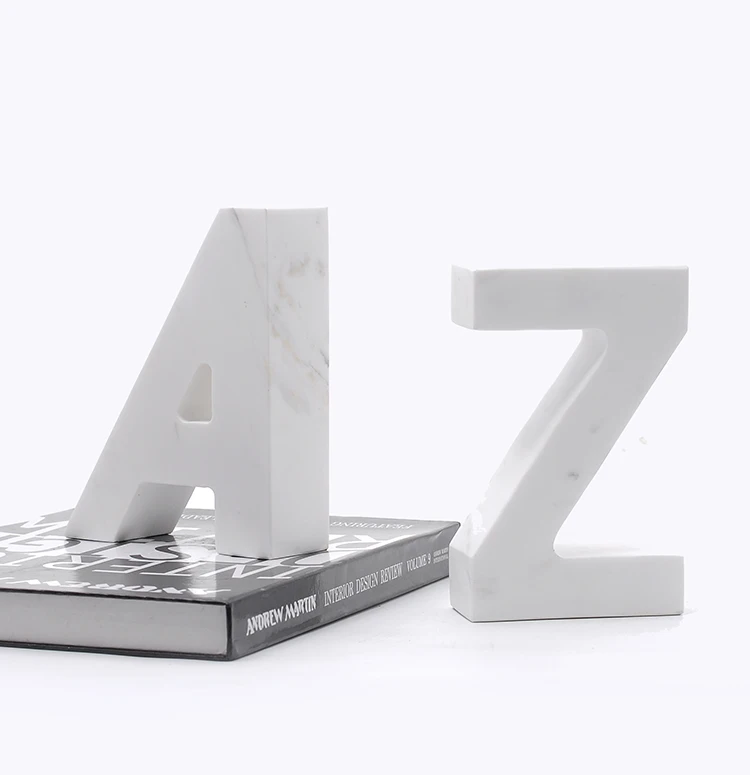 White Marble Alphabetical Bookends are beautifully handcrafted in the shapes of letters A to Z. Each piece is carved from natural white marble and polished to achieve a smooth, elegant finish. Customers can select any alphabet letter or order a full customized set. These bookends are popular for personalized décor and custom gifting, making them versatile and unique.