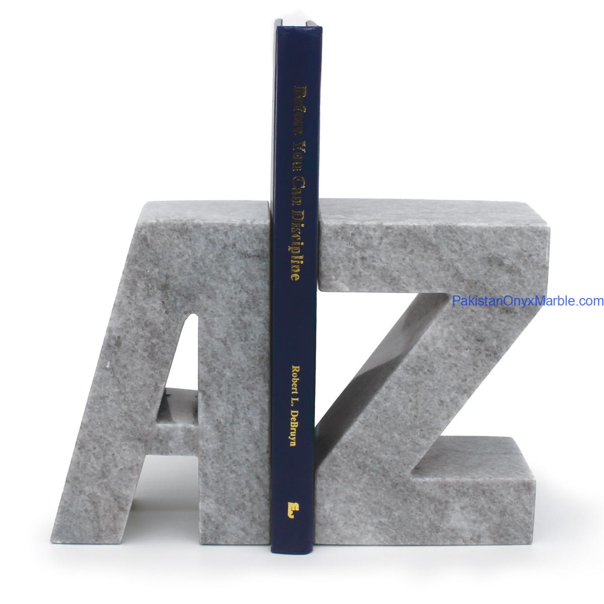 White Marble A To Z Alphabetical Bookends Designs