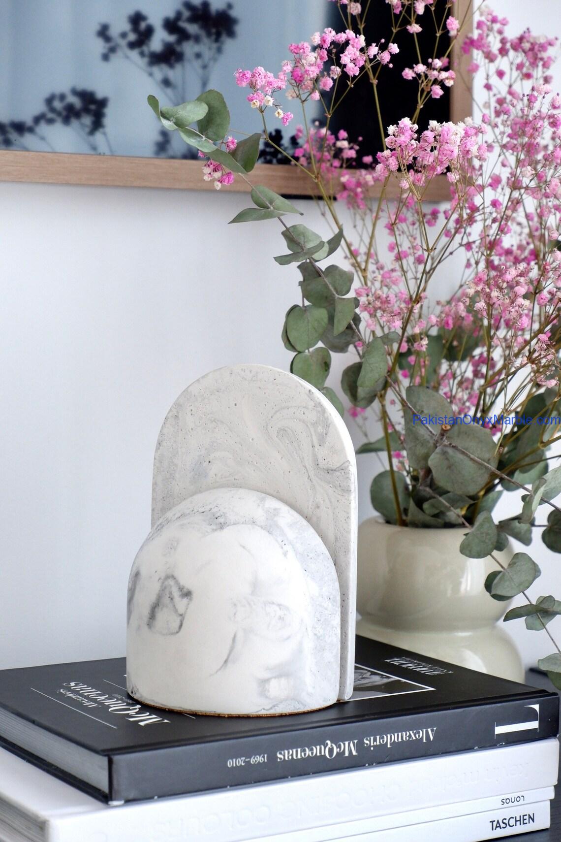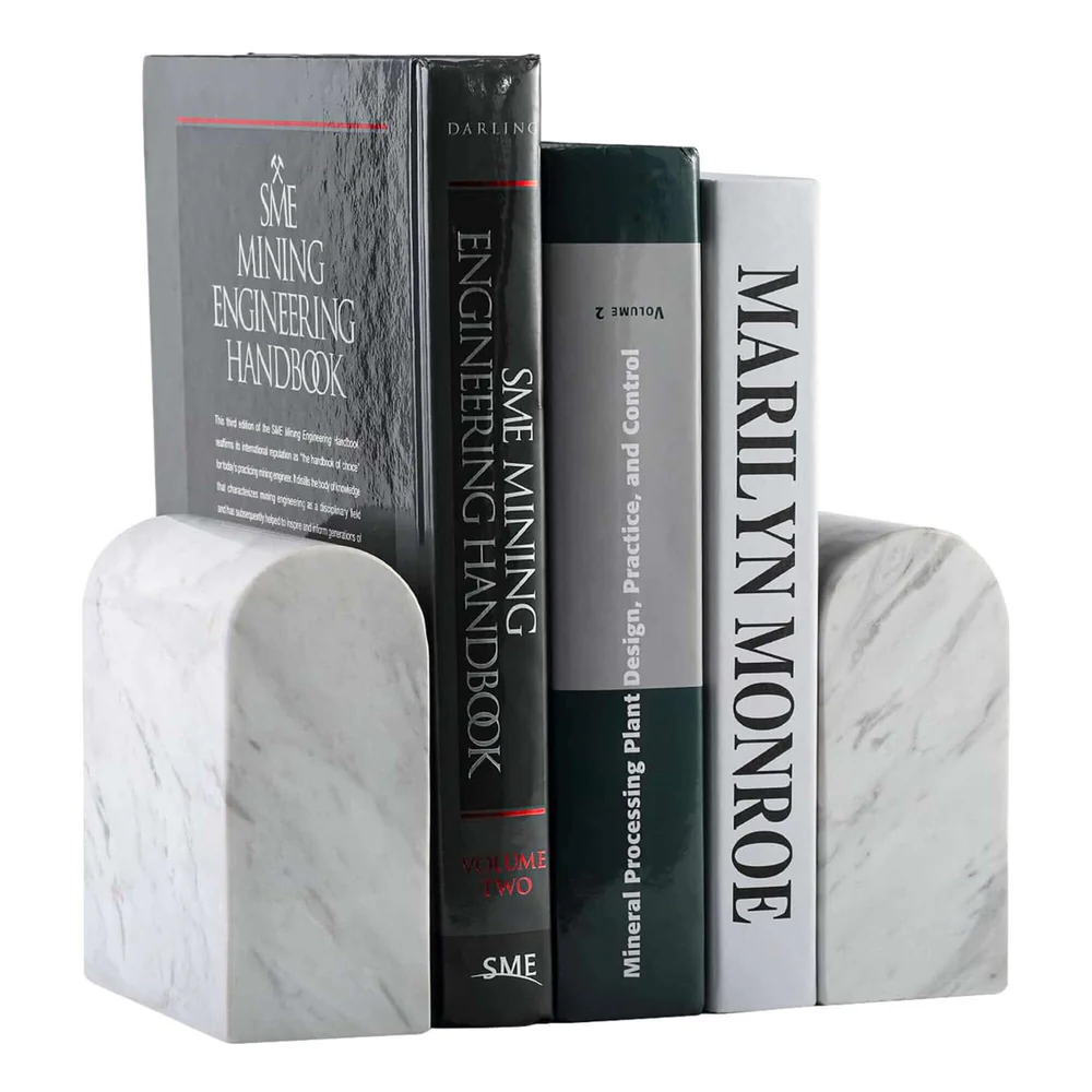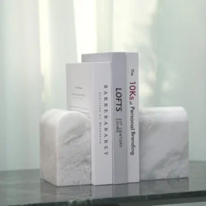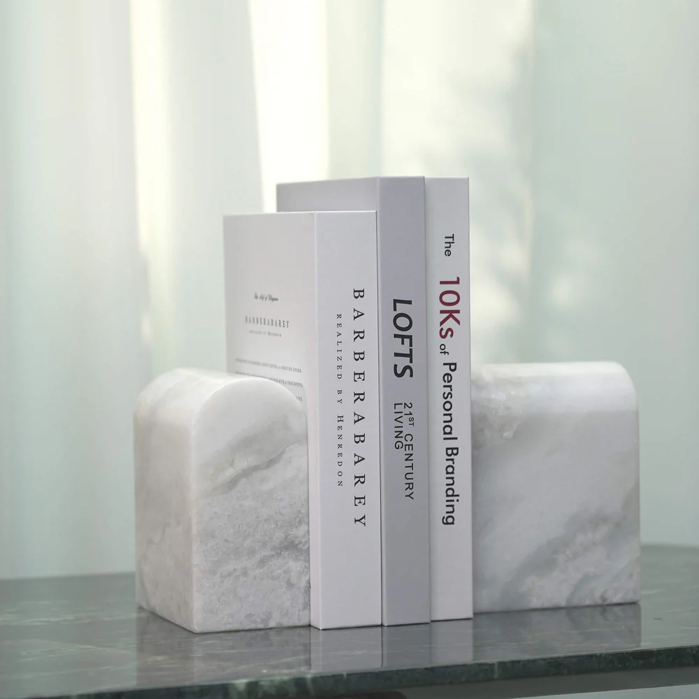 The Round White Marble Bookends feature a smooth, circular form with a minimalist and timeless appeal. Their soft curves make them versatile decorative accents that fit into modern, contemporary, and classic interiors alike. The round design creates a balanced look while also serving as a functional weight to hold books firmly in place.