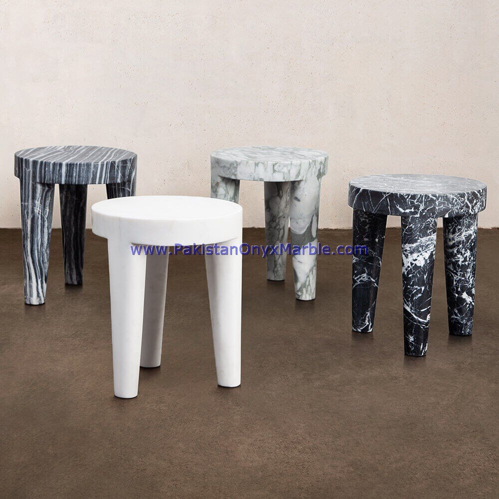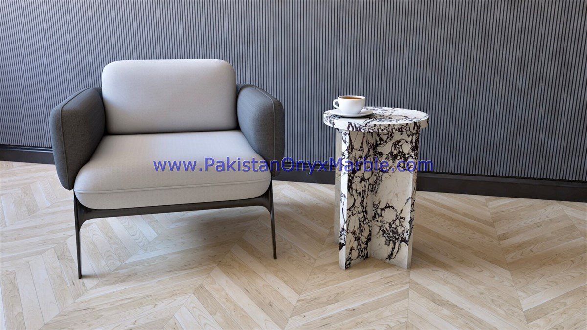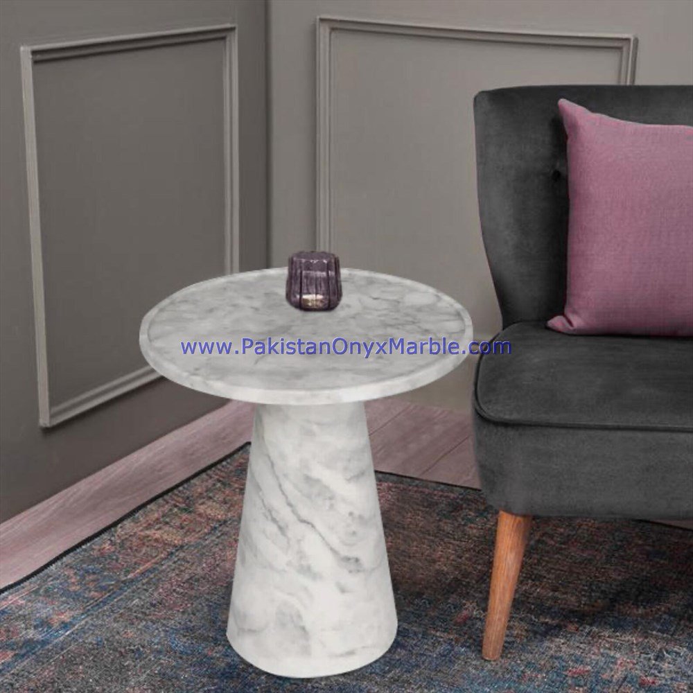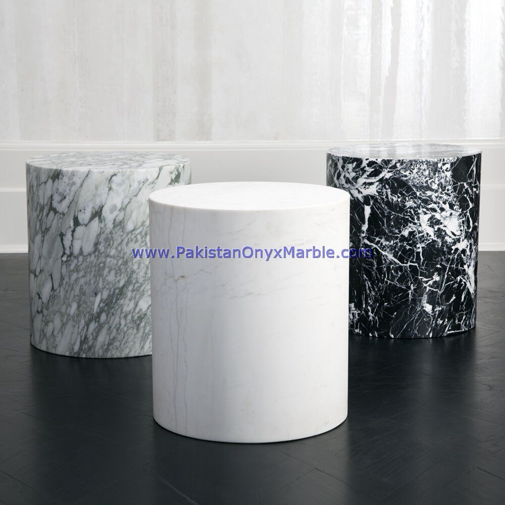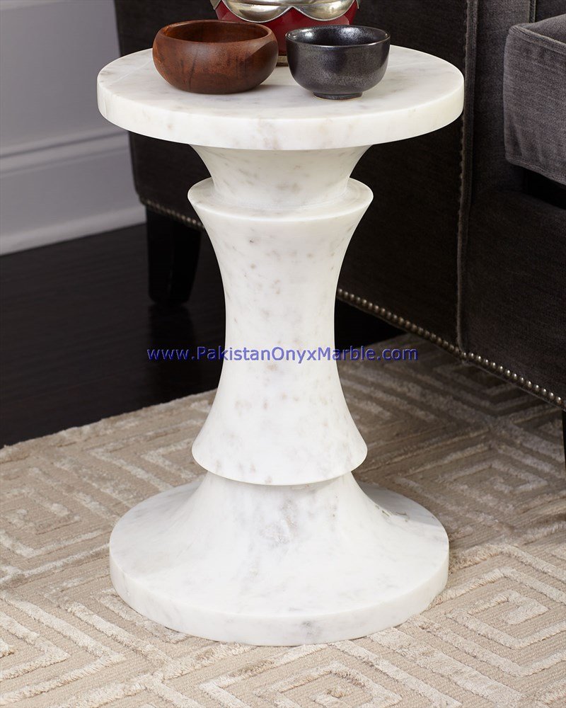 - Some marble side tables are customized to fit specific spaces and design preferences.