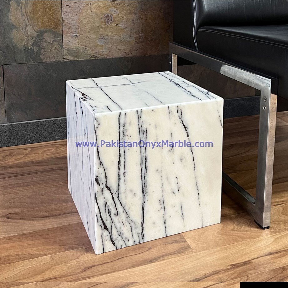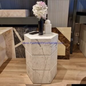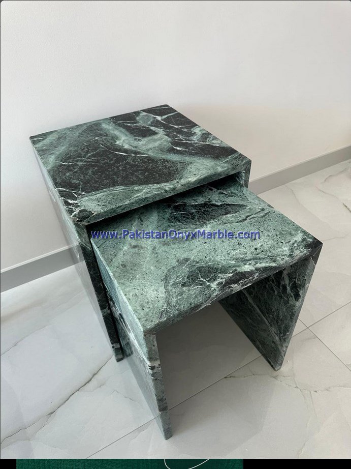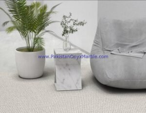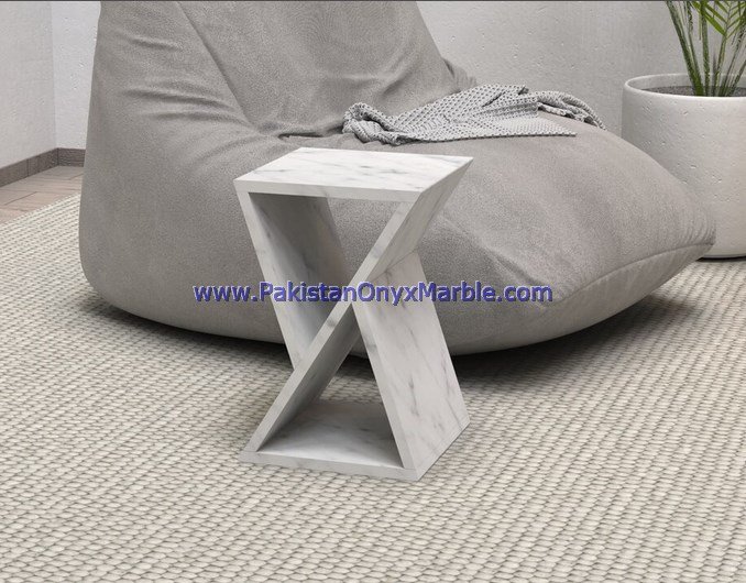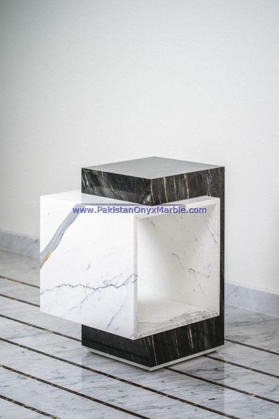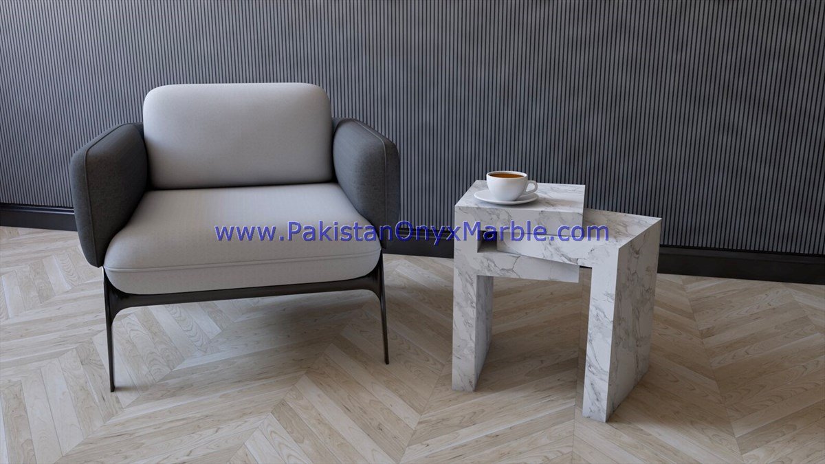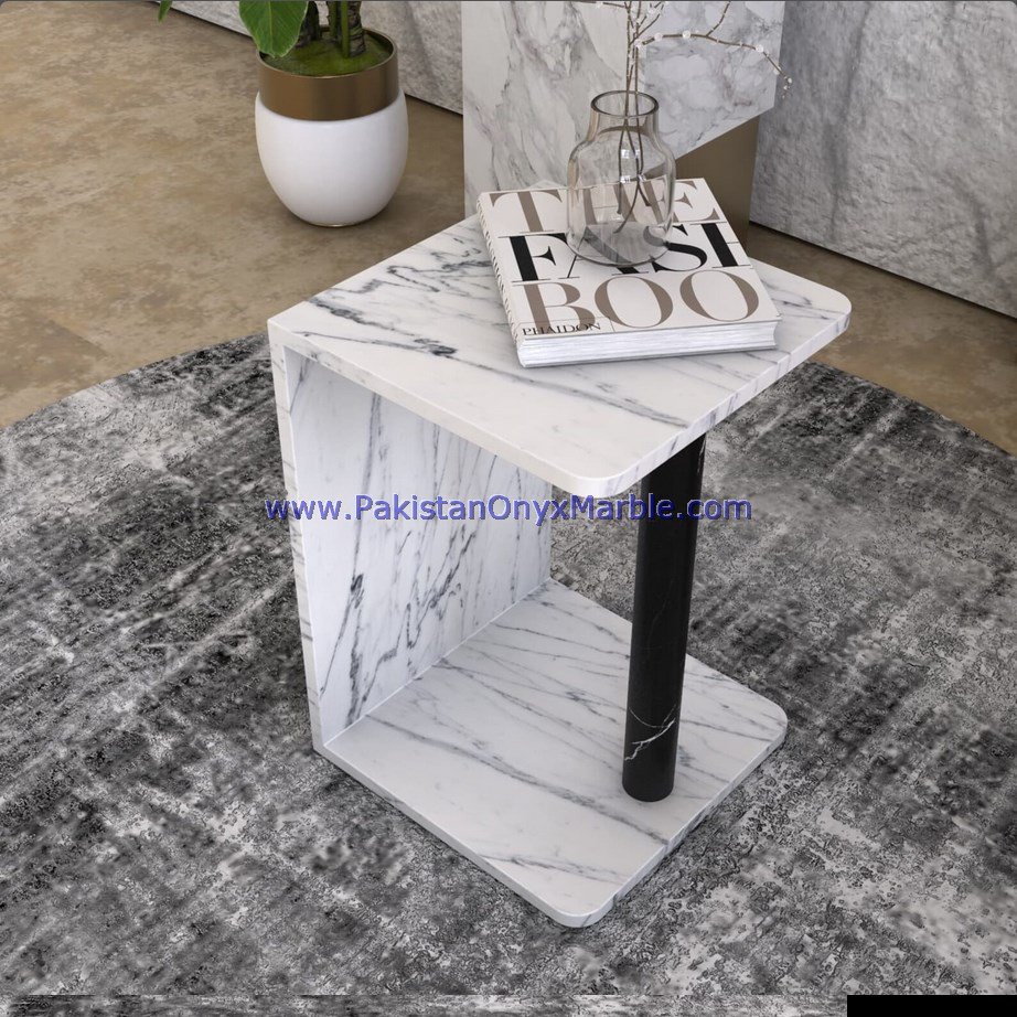 - Some marble side tables are customized to fit specific spaces and design preferences.