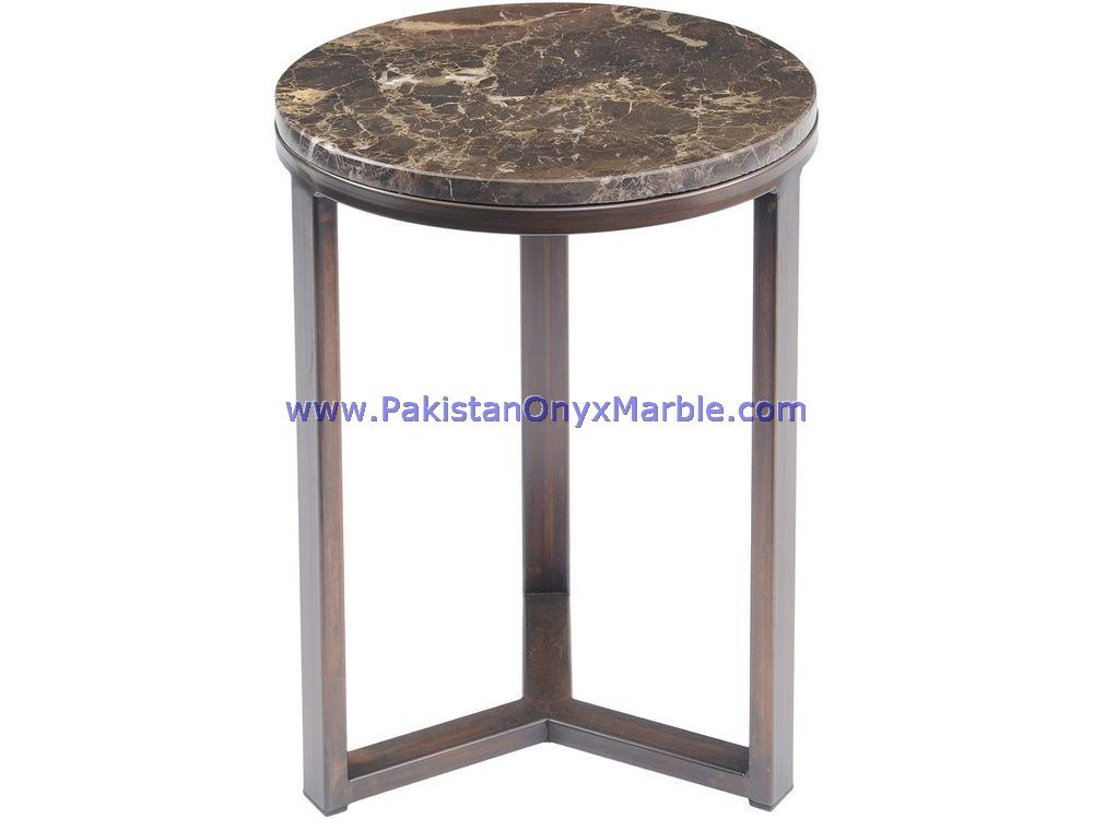 - The marble top is securely attached to the base or frame, which can be made of various materials like metal, wood, or iron.