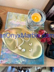 Pakistan Onyx Marble manufactures premium Afghan Green Jade Onyx Irregular Trays, expertly carved from Grade-A Green Jade Onyx sourced directly from Afghanistan. Each piece is shaped from a single solid block, preserving the natural veins, rich green tones, and authentic organic contours of the stone. The irregular design follows the natural outline of the slab, giving every tray a unique, sculptural appearance suitable for luxury home décor, serving, retail display, and interior design projects.