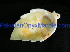 Pakistan Onyx Marble manufactures premium Afghan Green Jade Onyx Leaf Trays, carved from Grade-A Green Jade Onyx sourced directly from Afghanistan. Each tray is made from a single solid block, ensuring natural translucency, rich green tonal depth, and exceptional durability. The leaf-shaped design features a tapered body, smooth curved edges, and optional carved vein details, giving every tray a sculptural, elegant, and high-end appearance suitable for luxury décor, serving, and interior styling.