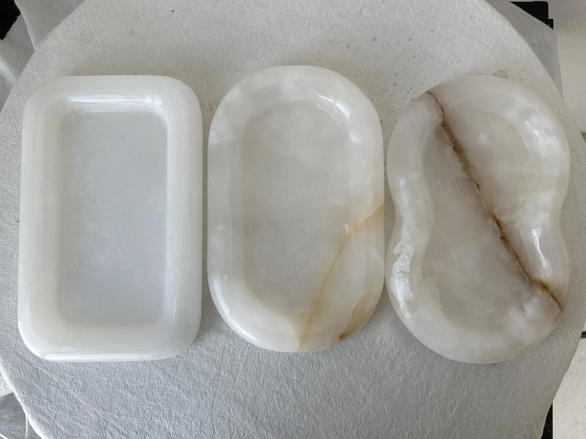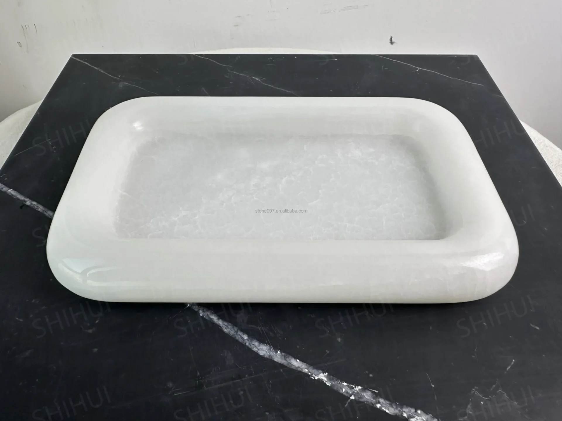 Pakistan Onyx Marble specializes in high-precision hand-carving using solid Afghan Snow White Onyx blocks. Every tray is shaped, polished, and checked by skilled craftsmen with years of export experience.