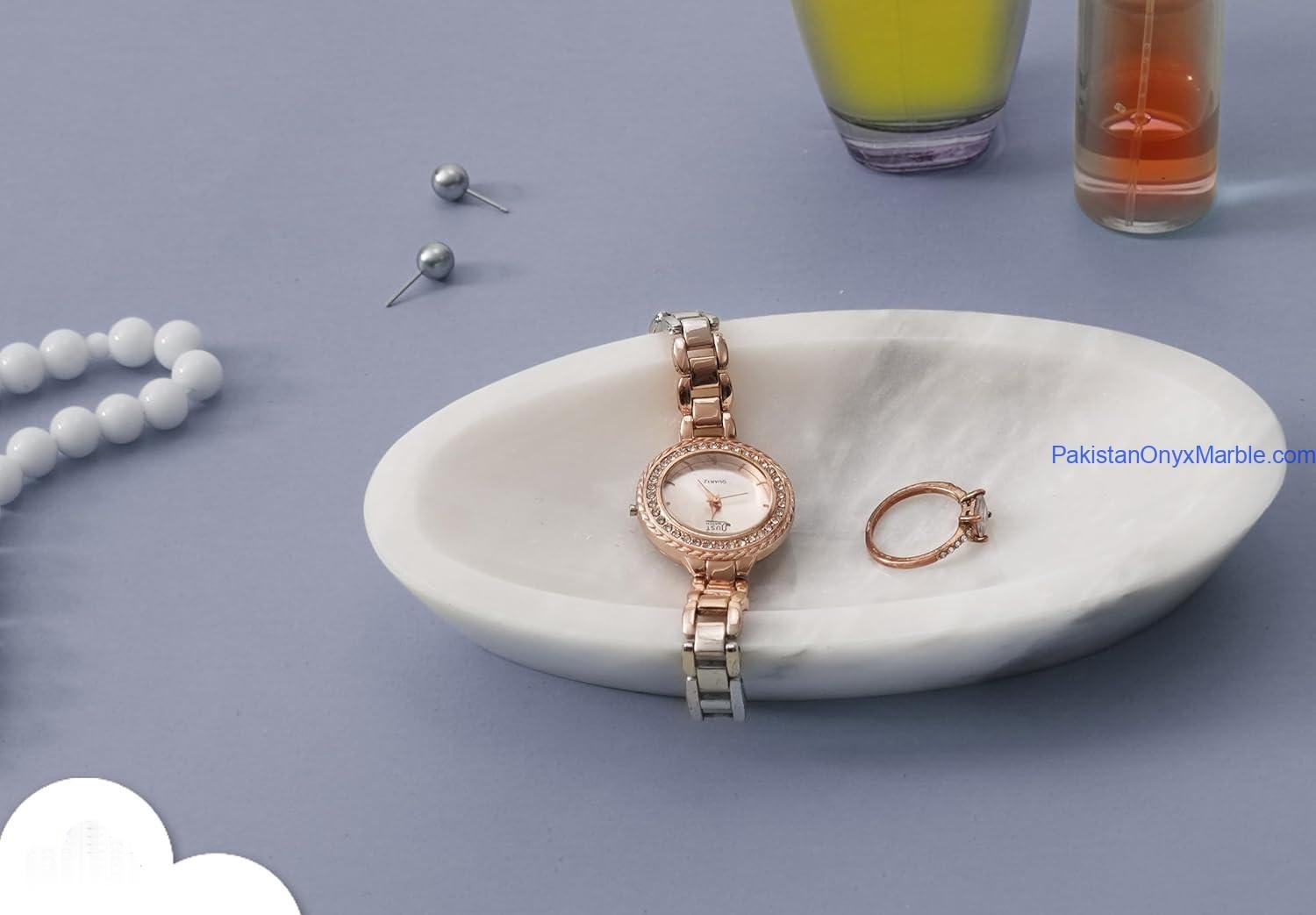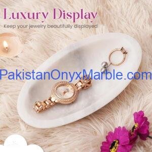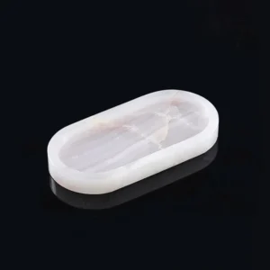 Pakistan Onyx Marble produces premium Afghan Snow White Onyx Oval Trays, handcrafted from Grade-A white onyx sourced from Afghanistan. Each tray is carved from a single solid block, delivering exceptional purity, a refined polished finish, and a smooth elongated oval profile. The clean curves and minimalist design make these trays ideal for luxury home décor, serving, vanity setups, and interior styling projects.