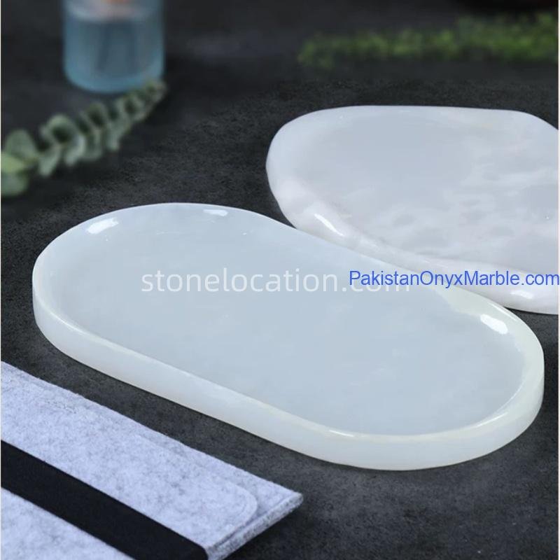 Afghan Snow White Onyx Serving Trays – Oval Design