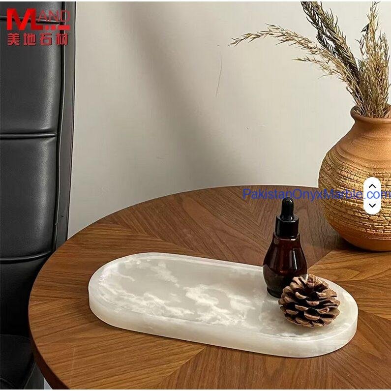 Pakistan Onyx Marble specializes in high-precision hand-carving using solid Afghan Snow White Onyx blocks. Every tray is shaped, polished, and checked by skilled craftsmen with years of export experience.